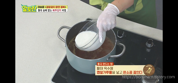 알토란 이보은 요리연구가의 김장김치 육수 비법은 황태육수를 이용하여 깊고 진한 맛을 내는 풀국을 만드는 것입니다.